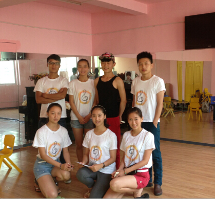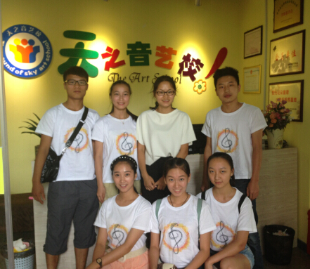 最后陈红红学姐和实践队员们在天之音艺校的logo旁边合影留念结束今天的实践活动。
