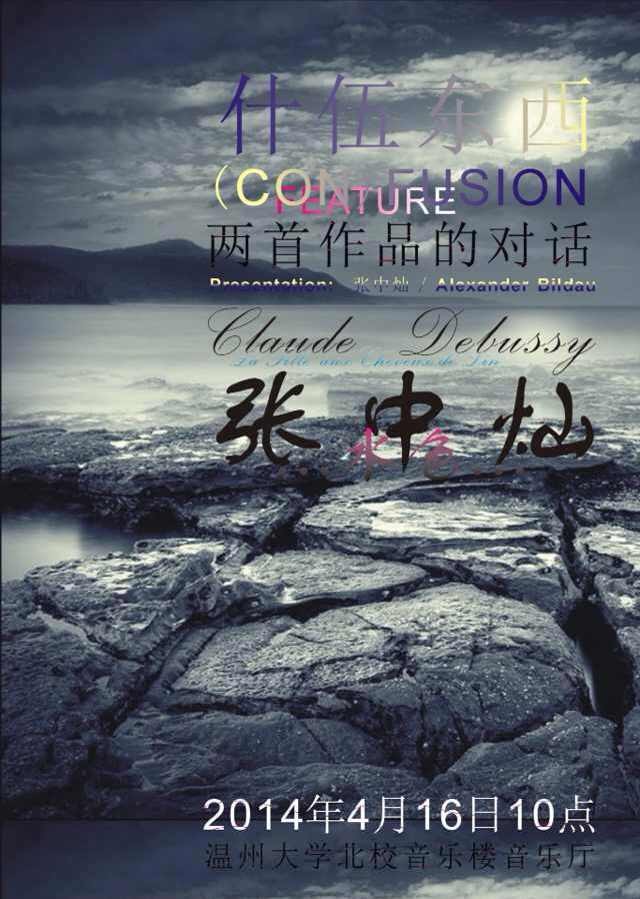 在讲座的一开始,张中灿老师整理衣衫问起Alexander教授:“番茄酱加饺子有什么感觉?”这一问,全场都忍俊不禁,原来,教授不仅喜欢在温州教学,还喜欢温州的美食,这番茄酱加饺子就是他的最新发现。在大家的笑声中,这场讲座开始了。只见教授操着一口不怎么流利的中文和张中灿老师二人积极讨论德彪西作品的发展方式,还分析了张中灿老师的最新作品《水色》。现场笑声不断,快乐不断,让同学们不仅理解了德彪西的作品的发展特点,还学到了些作曲方面的小知识。