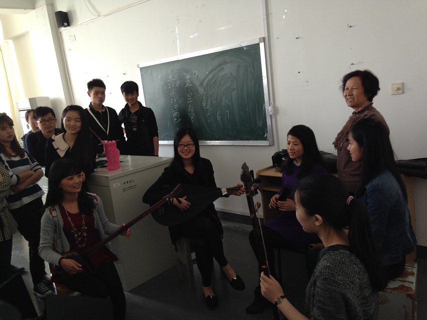 的学生们交流学习,听了他们独有的课程:南音。南音由三弦、二弦、洞箫、琵琶四种乐器演奏,用闽南方言演唱,同学们认真的记录笔记,聆听美妙的南音音乐;课堂上泉州师范老王论坛