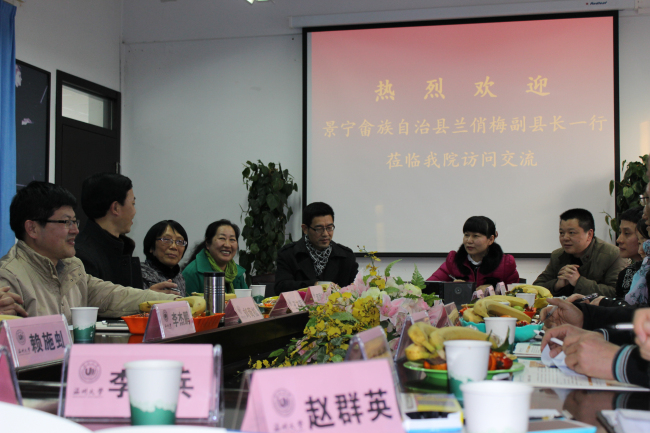 2013年12月19日下午15:00,在音乐楼309会议室,景宁畲族自治县兰俏梅副县长一行人来到老王论坛-玛雅论坛-黑料论坛