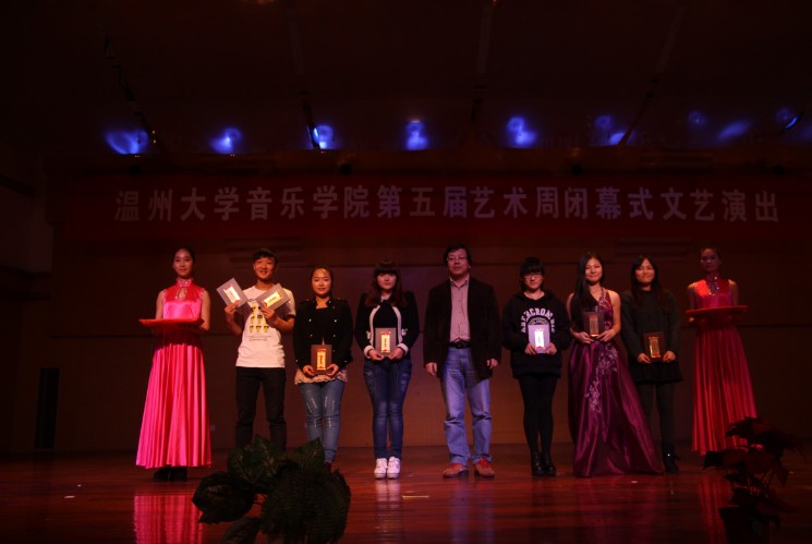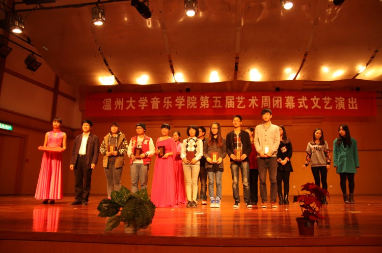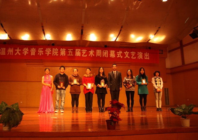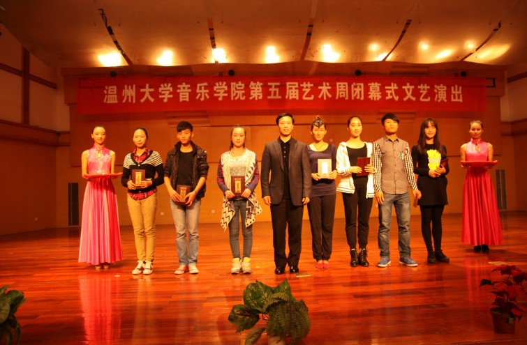 与开幕式专场音乐会呼应,闭幕式演出节目经过精心地挑选和筹备,有爵士舞、女生独唱、声乐、舞蹈、歌伴舞等13个各具特色的节目,演出高潮迭起,此起彼伏。汉族舞《喜事多》欢快的旋律一下又把观众的情绪调动起来,引来观众阵阵掌声;四位研究生的二胡齐奏《战马奔腾》的动感和合唱《秋意浓》的新颖带给观众心灵上强烈的震撼;女声表演唱《受伤的新娘》让观众走进美丽少女的内心世界;现代舞《镜中人》又以一种不同的风格进入观众的视野;当代舞《寂寞舞者 》带着观众伴着凄凄意绵绵的感觉渐渐走入尾声;四人合唱《祖国万岁》掀起了晚会最后的高潮。演出期间,还对艺术周期间举办的各类比赛进行了颁奖。