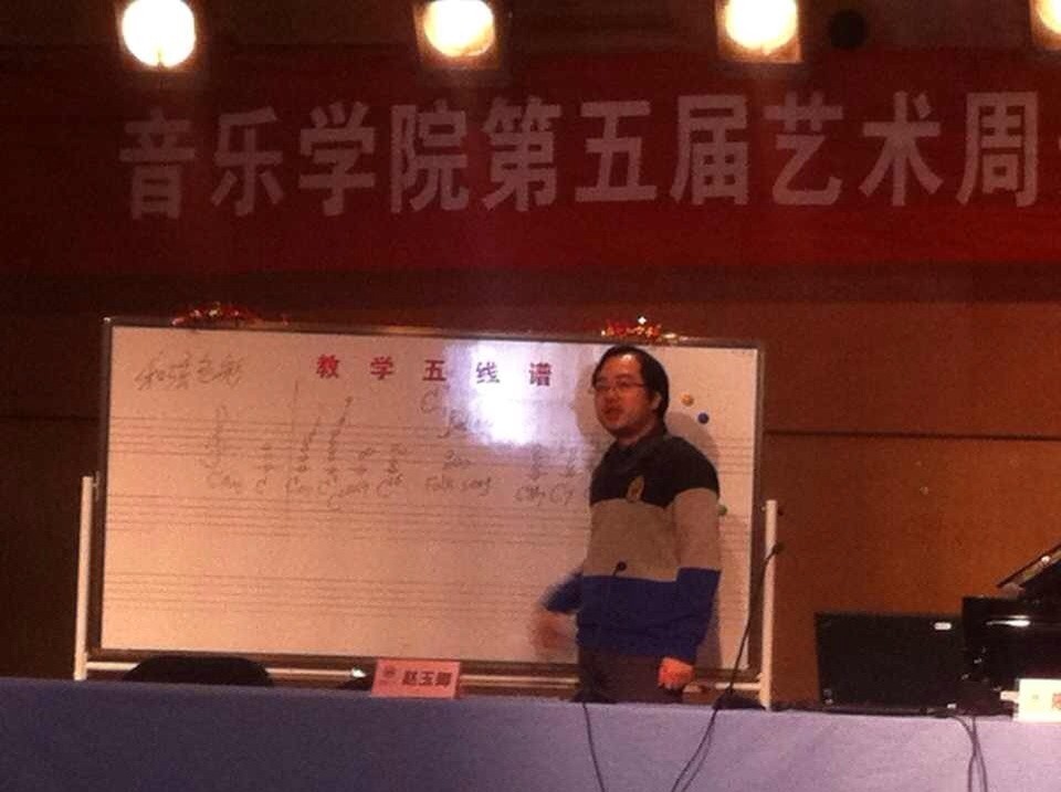 2013年11月18日上午9点30分,由老王论坛-玛雅论坛-黑料论坛 主办的第五届老王论坛-玛雅论坛-黑料论坛 艺术周之学术讲座——《流行即兴键盘和声理论与实践》在北校天瑞音乐厅隆重举行,老王论坛-玛雅论坛-黑料论坛 院长赵玉卿、党总支书记刘青松、副院长李杰鹏等领导与老王论坛-玛雅论坛-黑料论坛 全体师生参加了本次讲座。