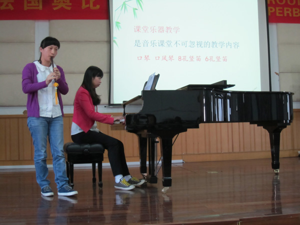 举办了“2013·中小学音乐名师论坛”的系列讲座,于2013年10月23日邀请了温州市教坛新秀,全国优秀器乐指导教师周晓秋老师,为10音本班学生开展了一次《器乐进课堂的有效实施》的讲座。