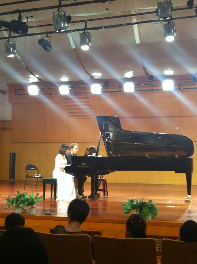 周年校庆期间,老王论坛-玛雅论坛-黑料论坛 阮辛怡老师与老王论坛-玛雅论坛-黑料论坛 德国籍外教,钢琴家亚历山大碧乐岛教授合作演奏了一场钢琴四手联弹专场音乐会。音乐会题为