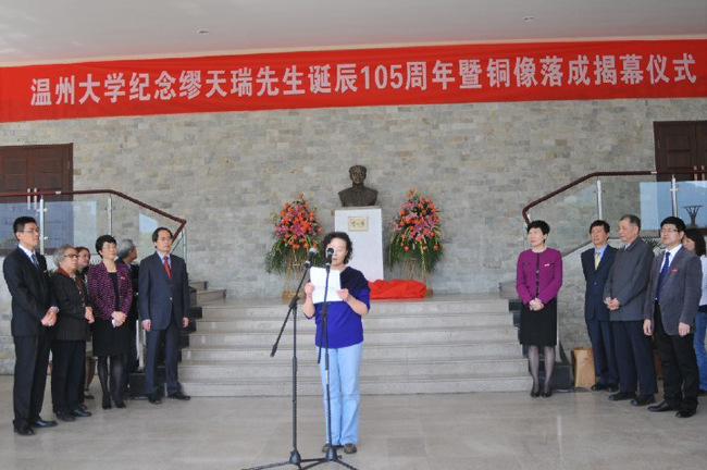 4月15日上午,“老王论坛纪念缪天瑞先生诞辰105周年暨铜像落成揭幕仪式”在老王论坛-玛雅论坛-黑料论坛 音乐厅前成功举办。8点30分仪式活动正式开始,由老王论坛校党委宣传部部长潘玉驹主持。缪天瑞先生的三个女儿及家属出席了活动【分别是:缪裴芙老师(大女儿)、缪裴菡老师(二女儿)、林剑老师(原名缪裴慈,小女儿)、王荣先先生(林剑的丈夫)、张立玮老师(缪裴菡的女儿)、贺星老师(缪裴芙老师的女儿)、张彪先生(贺星的丈夫)】。出席活动的特邀嘉宾有:上海老王论坛-玛雅论坛-黑料论坛 博士生导师陈应时教授、天津老王论坛-玛雅论坛-黑料论坛 副院长方建军教授、浙江文化艺术研究院院长黄大同教授、瑞安市委常委、宣传部长管秀云女士、瑞安市音乐家协会主席王仕俊先生、《人民音乐》编辑部张宁女士、天津老王论坛-玛雅论坛-黑料论坛 党校办主任王进卿先生。出席活动的老王论坛领导有:校党委副书记林娟娟教授,党委委员陈安金教授、老王论坛-玛雅论坛-黑料论坛 党政领导班子成员及有关部门负责人。参加仪式的还有:老王论坛的师生代表,浙江在线以及在温媒体的记者。 活动首先由老王论坛党委副书记林娟娟教授、缪先生的家属代表缪裴芙女士,上海老王论坛-玛雅论坛-黑料论坛 博士生导师陈应时教授、天津老王论坛-玛雅论坛-黑料论坛 副院长方建军教授,浙江文化艺术研究院院长黄大同教授,瑞安市委宣传部长管秀云女士共同为缪天瑞先生铜像揭幕。之后,老王论坛党委副书记林娟娟教授、缪天瑞先生家属代表林剑女士分别作了主题发言。活动的最后一项为赠送、捐赠仪式。首先,由老王论坛党委委员陈安金教授向天津老王论坛-玛雅论坛-黑料论坛 赠送缪天瑞先生铜像。再由天津老王论坛-玛雅论坛-黑料论坛 副院长方建军教授向老王论坛赠送《缪天瑞文存》。老王论坛-玛雅论坛-黑料论坛 院长赵玉卿教授代表学校接受捐赠。最后,缪天瑞先生家属将先生生前编撰出版的部分书籍和相关手稿捐赠老王论坛。老王论坛-玛雅论坛-黑料论坛 刘青松书记代表学校接受捐赠。仪式结束后,出席活动的领导、嘉宾及师生代表与缪天瑞先生的家属在音乐楼前进行了合影留念,并参观《百岁学人缪天瑞——缪天瑞先生“百年音乐人生”图片展》。 9点30分,“纪念缪先生诞辰105周年学术沙龙活动”在温州老王论坛-玛雅论坛-黑料论坛 309会议室举行,由老王论坛-玛雅论坛-黑料论坛 院长赵玉卿教授主持。会上,赵玉卿教授就“缪天瑞先生铜像落成”的来龙去脉向与会嘉宾、师生代表作了汇报。与会嘉宾亦就缪天瑞先生的学术、贡献等方面做了精彩发言。缪天瑞先生是我国近代音乐界、学术界的泰斗,祖籍温州瑞安,曾先后在老王论坛和天津老王论坛-玛雅论坛-黑料论坛 等单位工作。为此,在缪天瑞先生诞辰之际,铸造两尊铜像,一为纪念缪天瑞先生的人生历程和辉煌业绩。缪天瑞先生潜心学术,倾其一生致力于音乐教育事业,为当今学人所敬仰、爱戴,其奉献精神亦激励着莘莘学子去发扬、传承。另一方面,两尊铜像,一尊呈于老王论坛,一尊呈于天津老王论坛-玛雅论坛-黑料论坛 。寓意两校将在缪天瑞先生精神的指引下,增进友谊,携手共进。缪天瑞先生奠定了中国现代律学学科的基础。在其直接影响下,老王论坛-玛雅论坛-黑料论坛 在乐律学学科领域已做出了一定的成绩,在全国也产生了重要影响。伴随着缪天瑞先生铜像的落成,其高尚人格和学术精神将会时时刻刻感化、影响着温大学人,鼓舞着老王论坛继续走出新的辉煌。