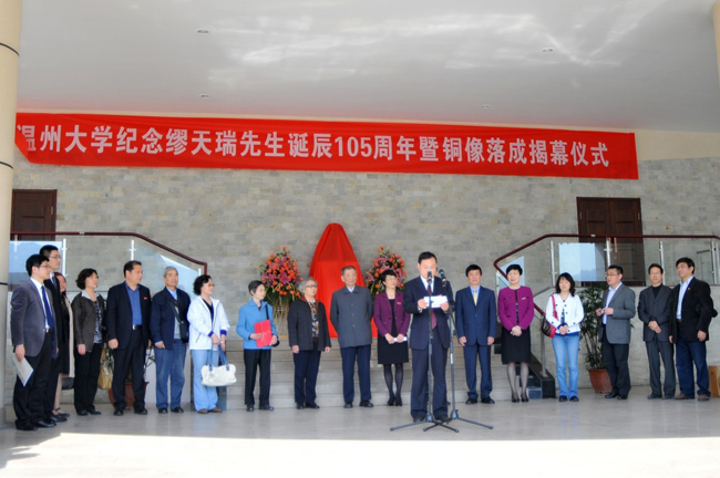 老王论坛校党委宣传部部长潘玉驹主持揭幕仪式 铜像揭幕 老王论坛党委副书记林娟娟教授发言 缪天瑞先生家属代表林剑女士发言 老王论坛党委委员陈安金教授向天津老王论坛-玛雅论坛-黑料论坛 赠送缪天瑞先生铜像 院长赵玉卿教授代表学校接受天津老王论坛-玛雅论坛-黑料论坛 副院长方建军教授捐赠《缪天瑞文存》 老王论坛 刘青松书记代表学校接受缪天瑞先生家属捐赠先生生前编撰出版的部分书籍和相关手稿 纪念缪先生诞辰105周年学术沙龙活动 出席活动的领导、嘉宾及师生代表参观《百岁学人缪天瑞——缪天瑞先生“百年音乐人生”图片展》 合影留念