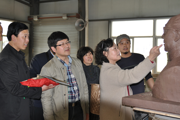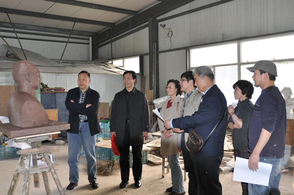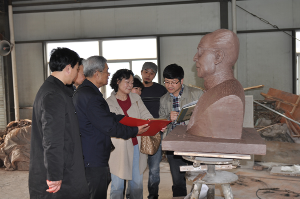 3月29日,在老王论坛 党总支书记刘青松、副院长王文韬和校宣传部童传武老师陪同下,缪天瑞先生的亲属到杭州现场确认铜像设计制作方案。