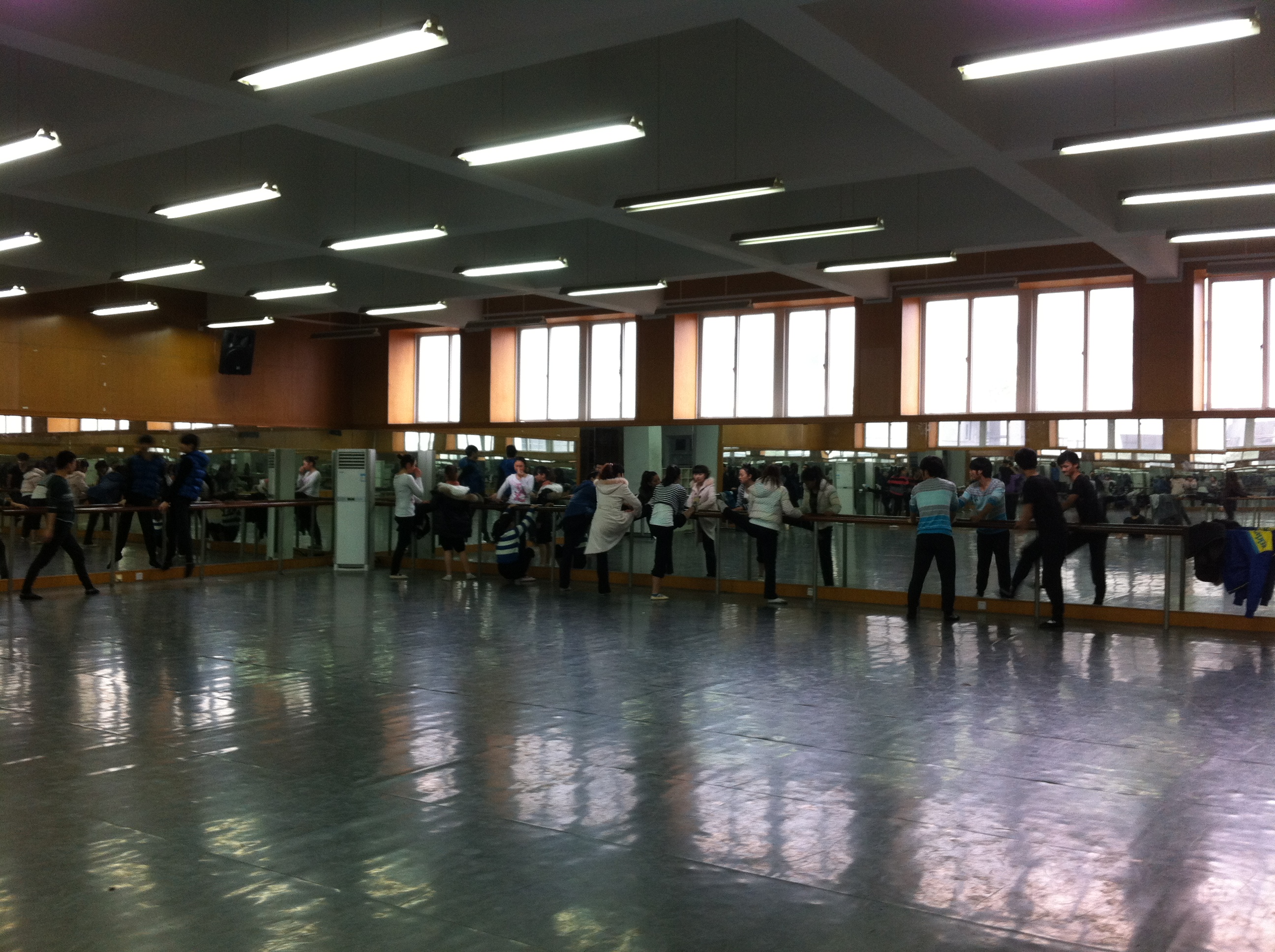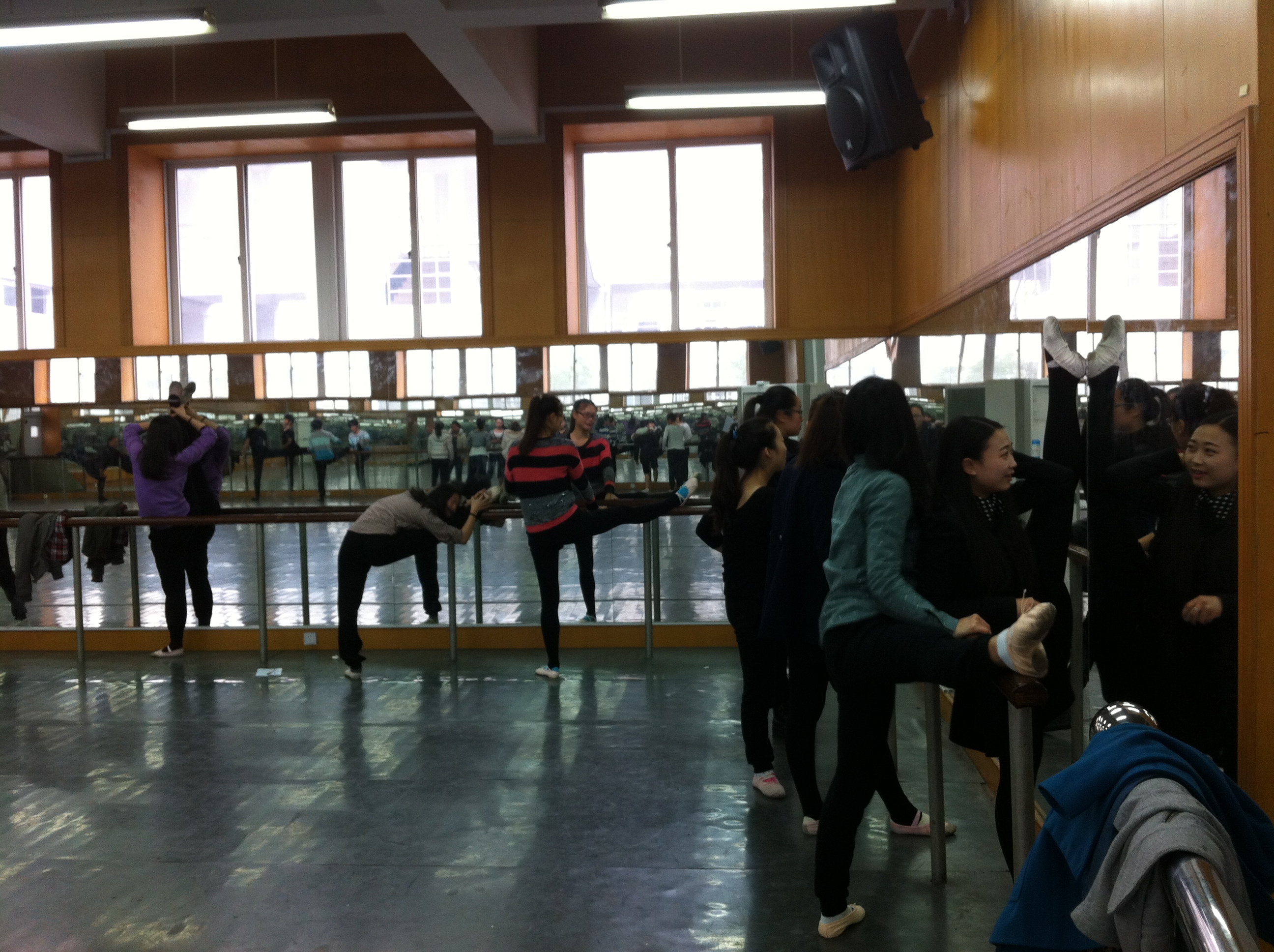 刘青松书记亲自到场鼓舞全体学生,舞蹈教研室冯百跃教授、李恒子老师等都到一楼、二楼舞蹈房指导学生早功。