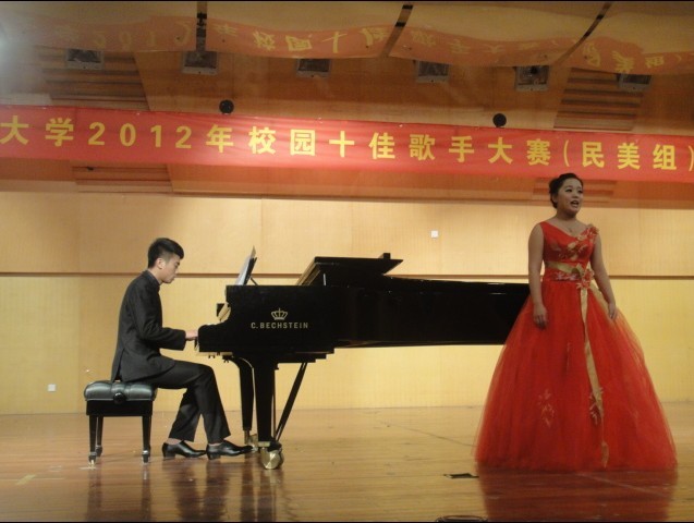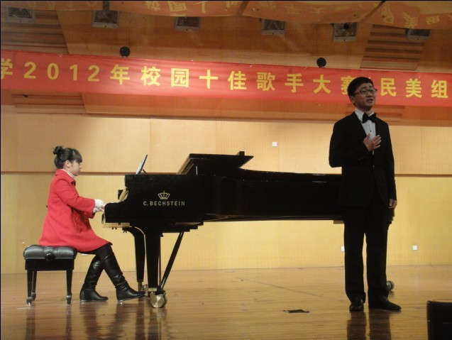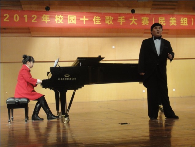 的董银萍以一曲《送给妈妈的茉莉花》赢得了台下观众的阵阵好评,郑旺同学的一曲《想亲娘》更是唱出了在外学子对母亲浓浓的思念,不经让在座观众想到了自己的母亲,引起了台下观众的共鸣。随后由钟林静、姜楠、王璐等同学带来了《天蓝蓝》、《边疆颂歌》《昭君出塞》等节目,选手们的演唱赢得了台下观众雷鸣般的掌声。最后,本次比赛在三位评委老师的精彩点评中结束。