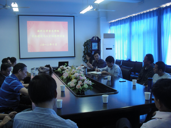 专业建设与人才培养”研讨会。赵玉卿院长、刘青松书记、王文韬副院长、各教研室主任、专业负责人及教师代表20多人参加了会议。温州市教育局教研员及老王论坛教务处各科室负责人,各自以书面形式对音乐专业建设和人才培养方案的制定,提出了可行的建议和意见。会议由王文韬副院长主持。