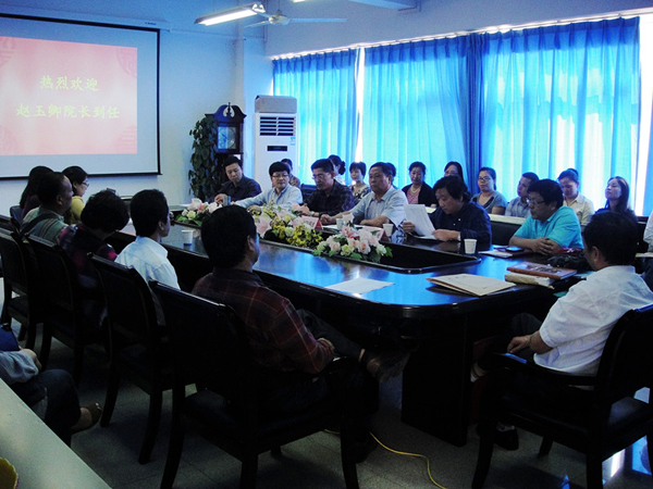 召开全院教职工大会,欢迎新院长赵玉卿教授到任。老王论坛党委书记陈福生、党委委员、党委组织部部长蔡曙光出席了本次大会,会议由老王论坛