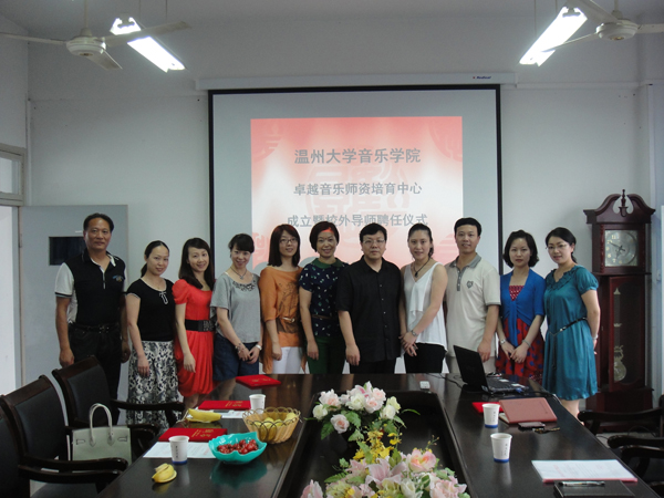 经院党政联系会议研究决定,王文韬副院长担任“卓越音乐师资培育中心”主任,钱瑞华(外聘)、蔡晓武担任副主任。该中心聘了6位省、市级教学名师为首批校外导师。她们分别是:温州市教育局的钱瑞华、鹿城区教育局的项雅丽、温州中学的许菲、温州市实验中学的林少燕和陈淑丹、温州市实验小学的朱旭娟等。