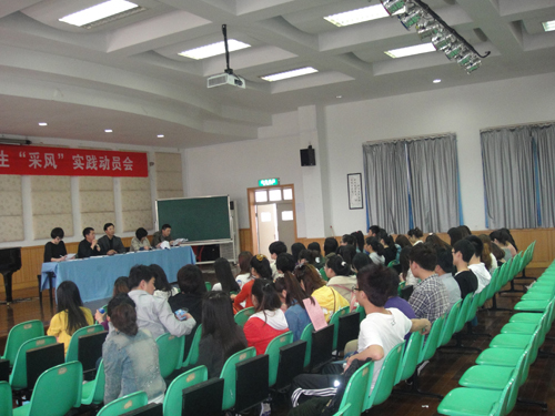 副院长王志毅、学生科副科长叶如芳、艺术实践中心易雄志、带队教师代表张晶晶等老师及09级100多名学生参加了本次“采风”出征动员大会。会议由分管副院长王文韬老师主持。