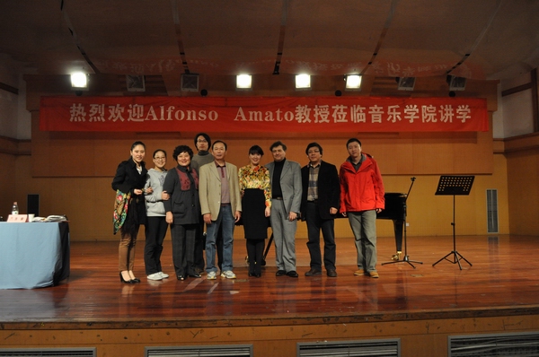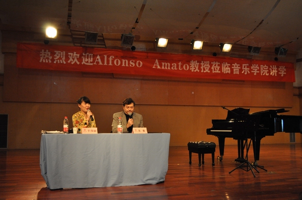 常务副院长李杰鹏副出席了仪式并为意大利Alfonso先生颁发了兼职教授的聘书。声乐、钢琴教研室教师,09级、10级、11级学生聆听了讲座。