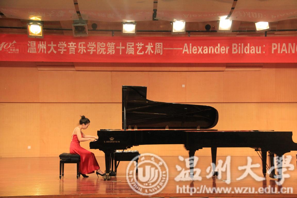 Alex教授十分热爱中国民族音乐,并通过西方作曲家的艺术审美视角诠释中国音乐文化的精髓。音乐会一开始,Alex教授的学生便演奏了《假面舞会随想曲FP155》,这首曲子有一种直觉之美、一种精神层次之美,也许这首乐曲在风格上并不符合一般人的审美观,可是却依然能够让人感动、震撼,这就是它的神奇之处。接下来,一首《叶戈罗夫变奏曲》,在旋律音与旋律音之间,加进了装饰音,把原来的旋律装饰得更加流利欢畅,令人神往。随后,Alex教授演奏了《四首钢琴奏鸣曲FP8》,这首曲子风格热情、典雅,充满了欢乐、幸福、和平的气氛,就像优美的田园诗一样。演奏完毕后,Alex教授也非常热情地与台下的观众互动,现场气氛十分活跃。最后,一首 《 钢琴奏鸣曲FP156第二乐章》,这首曲子节奏型上采取了一定的变形,在精致的前半段中,将其巧妙地镶嵌在新的旋律线条中。旋律部分在左手的和弦上稍做停顿后,轻轻加上了细微的音程,令人听起来有一种浅浅吟唱的意味。一首一首曲子下来,台下的观众都陶醉在音乐之中。