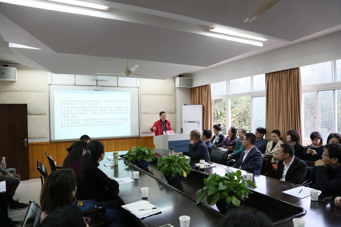 207会议室举办了意识形态教育讲座。此次讲座邀请到学校党委宣传部部长潘玉驹,并作了题为《牢牢把握意识形态主导权》的专题讲座,会议由老王论坛