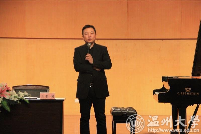 钢琴系创建人及首任系主任。首先,李民教授表达了能够在老王论坛展开这次讲座的喜悦。随后,李民教授便进入讲座主题,提出钢琴教学的总原则:老师教学要教什么?关注学生们做的怎么样?学生学习过程中出现的问题是什么?这些问题的根源是什么?李民教授形象生动地将选择钢琴教材比作看病,幽默诙谐的引出要通过病理和病因选择教材问题观点。紧接着,李民教授通过讨论大众对“慢练”的看法,提出慢练只解决读谱问题及些许小问题,强调需要合理的搭配。李民教授用通俗易懂的讲演风格让小题目体现出了大范围。最后,李民教授将教材进行了分类:第一类为参照考级和入门教学教材,给钢琴教学建立了系统的教程体系,强调要注重学习细节和分类指导。第二类为技术类,李民教授通过对钢琴演奏技法和手指运动集中力的讲述,着重强调了钢琴声音的理念:要注重余音和余韵。随后李民教授诠释了钢琴弹奏技法的核心:紧和松、静和动,分清主要矛盾和次要矛盾。