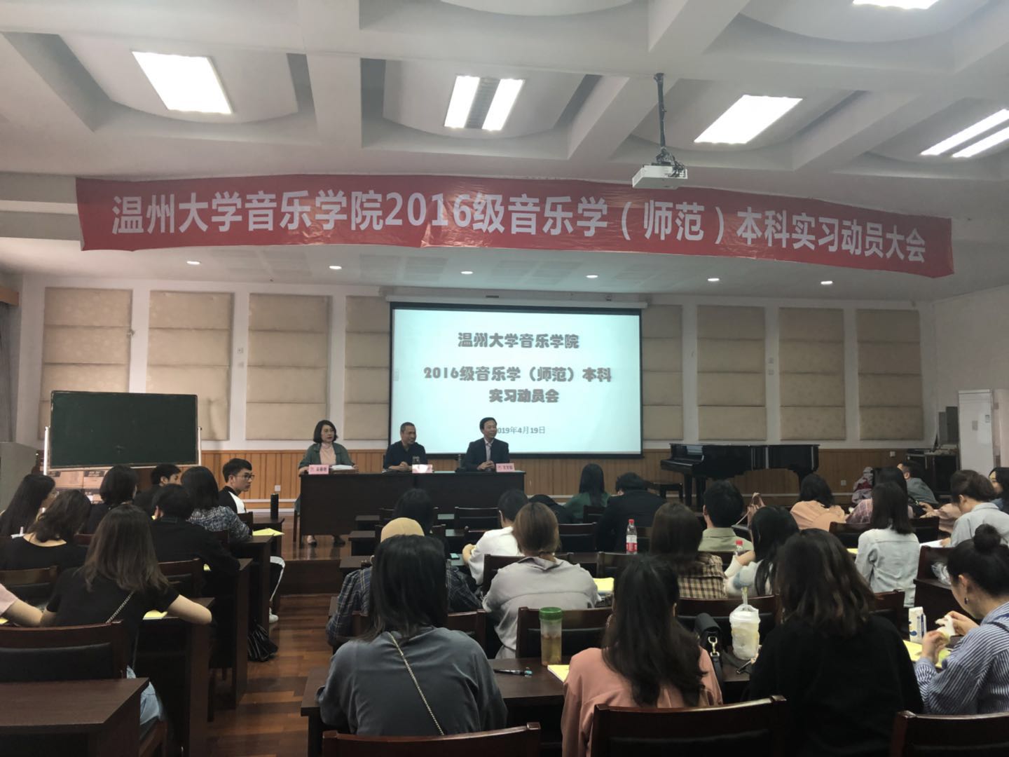 在201报告厅召开2016级音乐学(师范)实习动员大会,16级音乐学(师范)本科全体学生参加了会议,书记方建敏、教学副院长王文韬、卓越师资培育中心主任吴春艳、实习带队总负责李葳老师、各班班主任、教务科负责人、学生科负责人出席了会议。