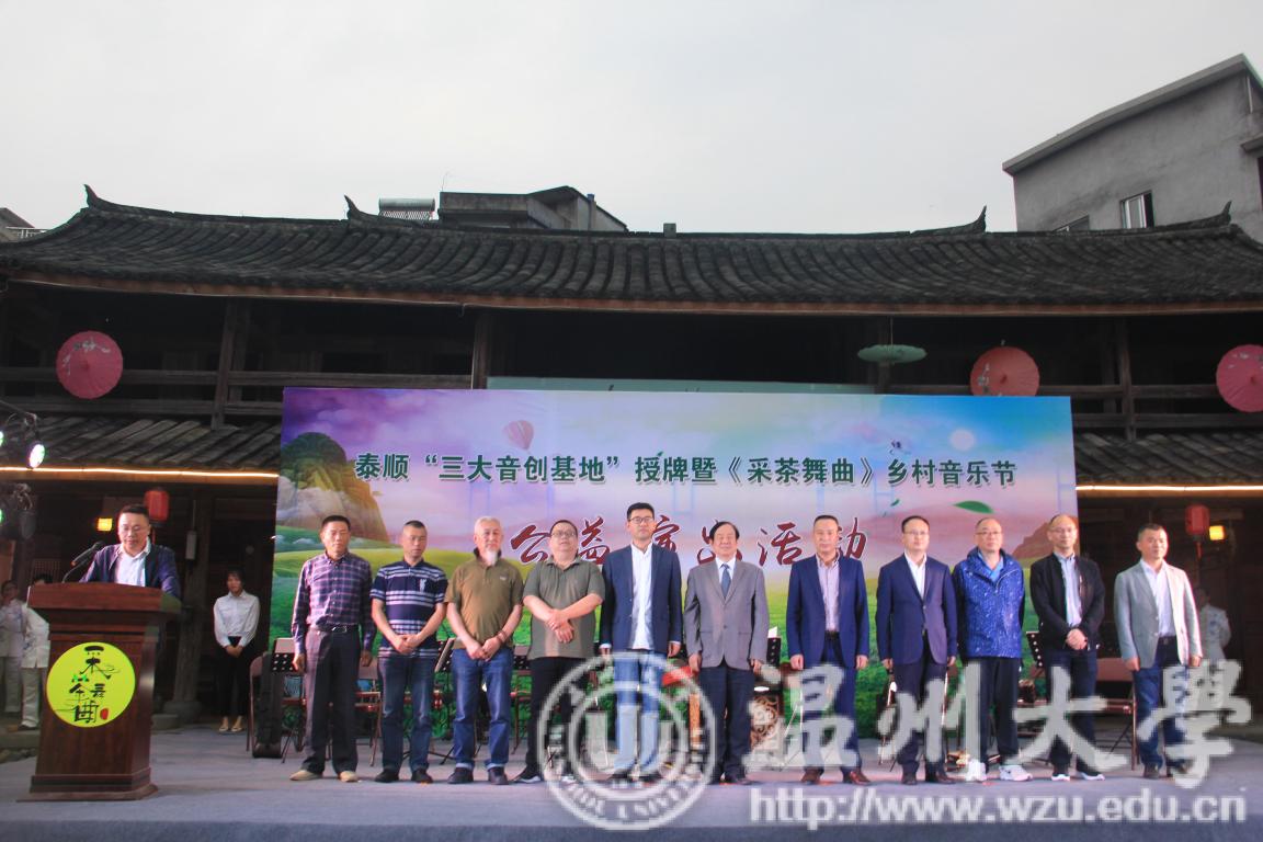 师生一行十余人在院长赵玉卿、党总支书记方建敏的带领下,应邀前往泰顺县东溪乡参加“泰顺县"三大音创基地"授牌暨《采茶舞曲》乡村音乐节”启动仪式。
