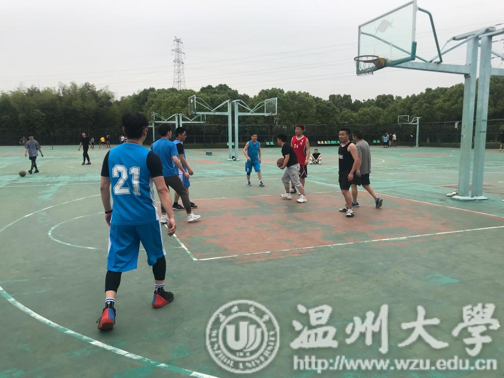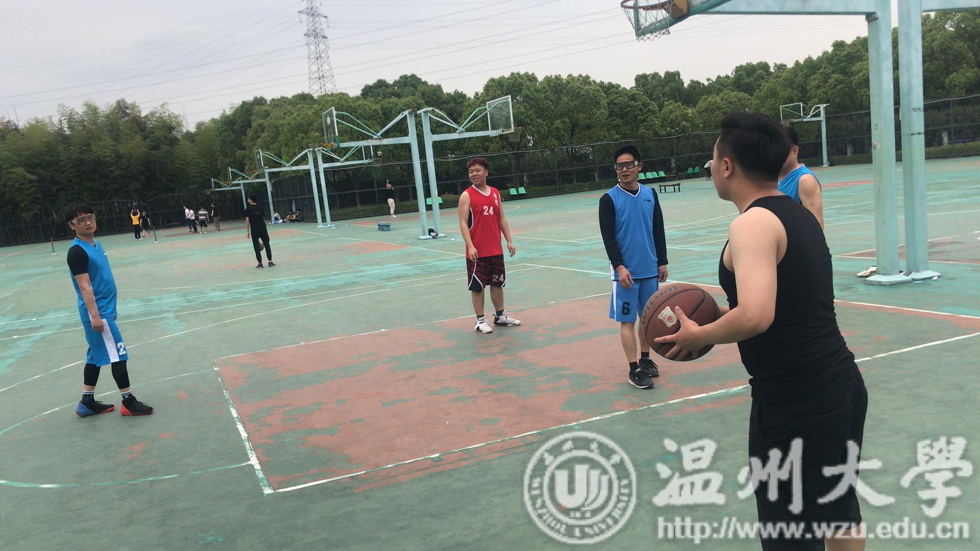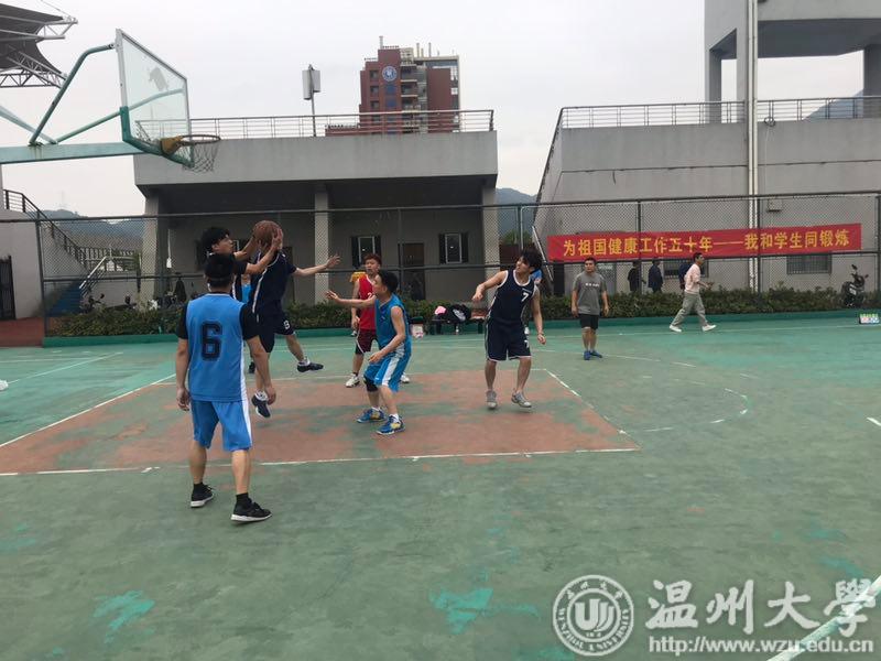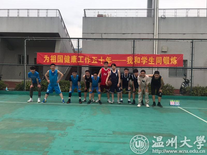 在篮球场举办2019年以为祖国健康工作五十年——我和学生同锻炼为主题的师生篮球联谊赛。