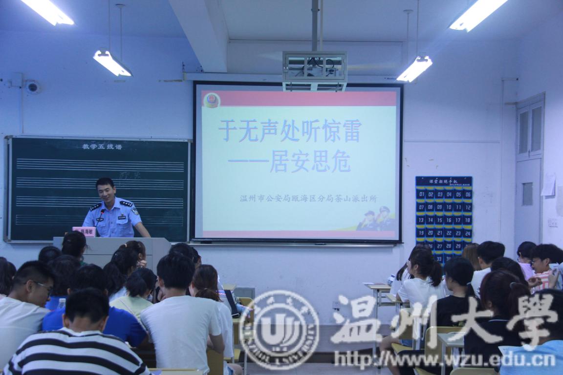 也不例外。此次安全讲座涉及到了防盗、防骗、人身安全、禁毒以及一些常识性的法律知识。讲座过程中,讲座中用了许多真实的案例以及作案手法,来揭开骗局的真面目,让同学们更加深入的了解到安全知识的重要性。讲座以"新生心理安全教育"收尾。刚刚来到大学的同学们,因为环境的改变,难免会产生一些不适应,因而产生一些心理上的变化。为了帮助同学们解决这些烦恼,学校开设了许多心理咨询机构。这些机构是为了让同学们能够直面自己的内心变化,在自己无法解决的情况下敢于寻求帮助而开设的。