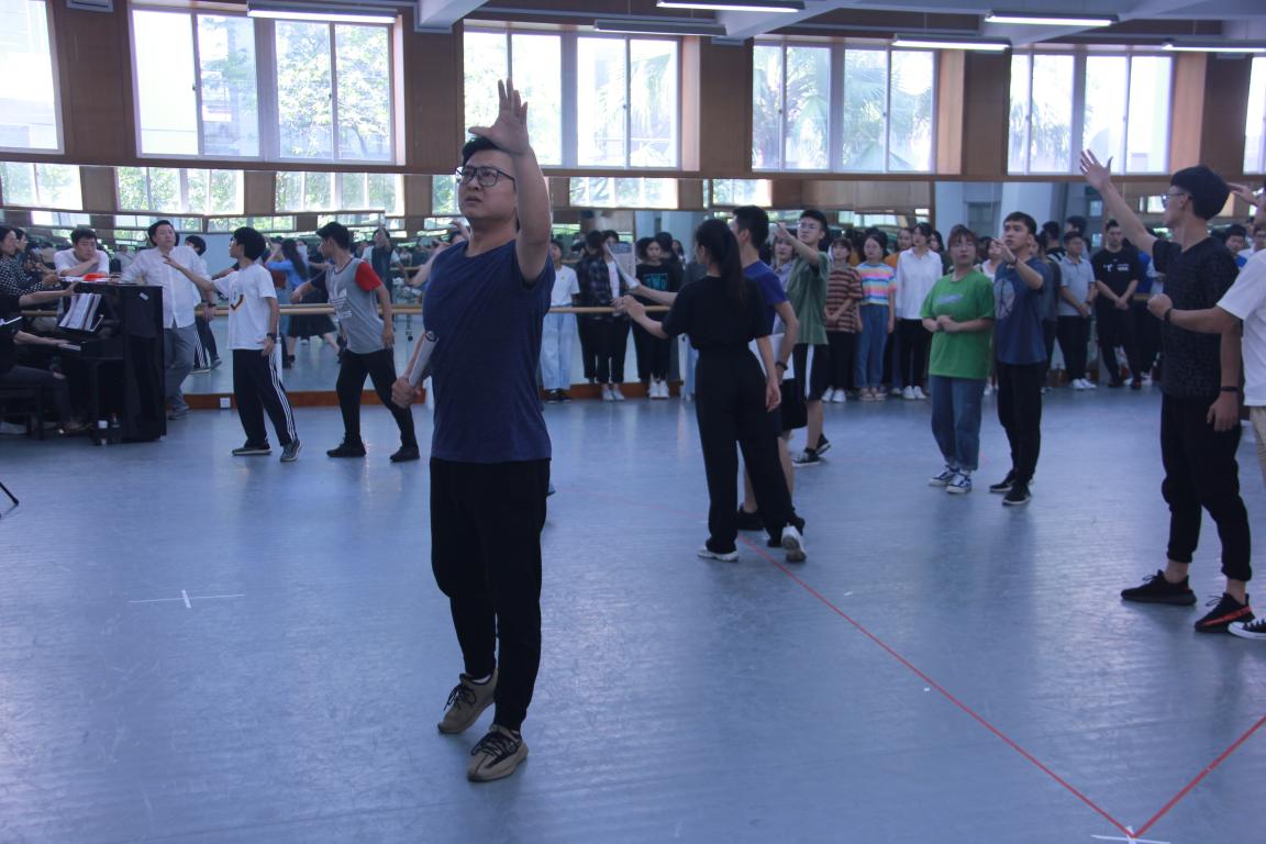 音乐楼舞蹈厅对排练原创歌剧《五星红旗》的师生们表示亲切的问候。