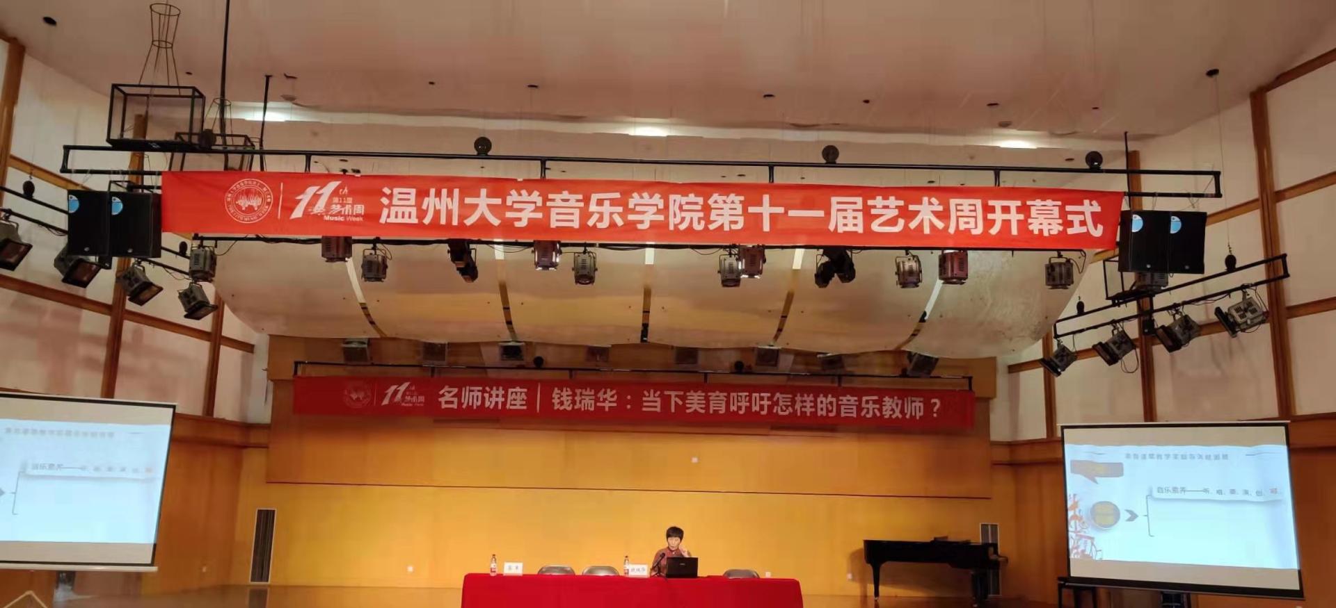 艺术周以钱瑞华讲师为大家开堂讲座作为开场——"当下美育呼吁怎样的音乐教师?" 钱瑞华老师是温州市教育教学研究院音乐教研员,浙江省特级教师、温州市名师,中央老王论坛-玛雅论坛-黑料论坛