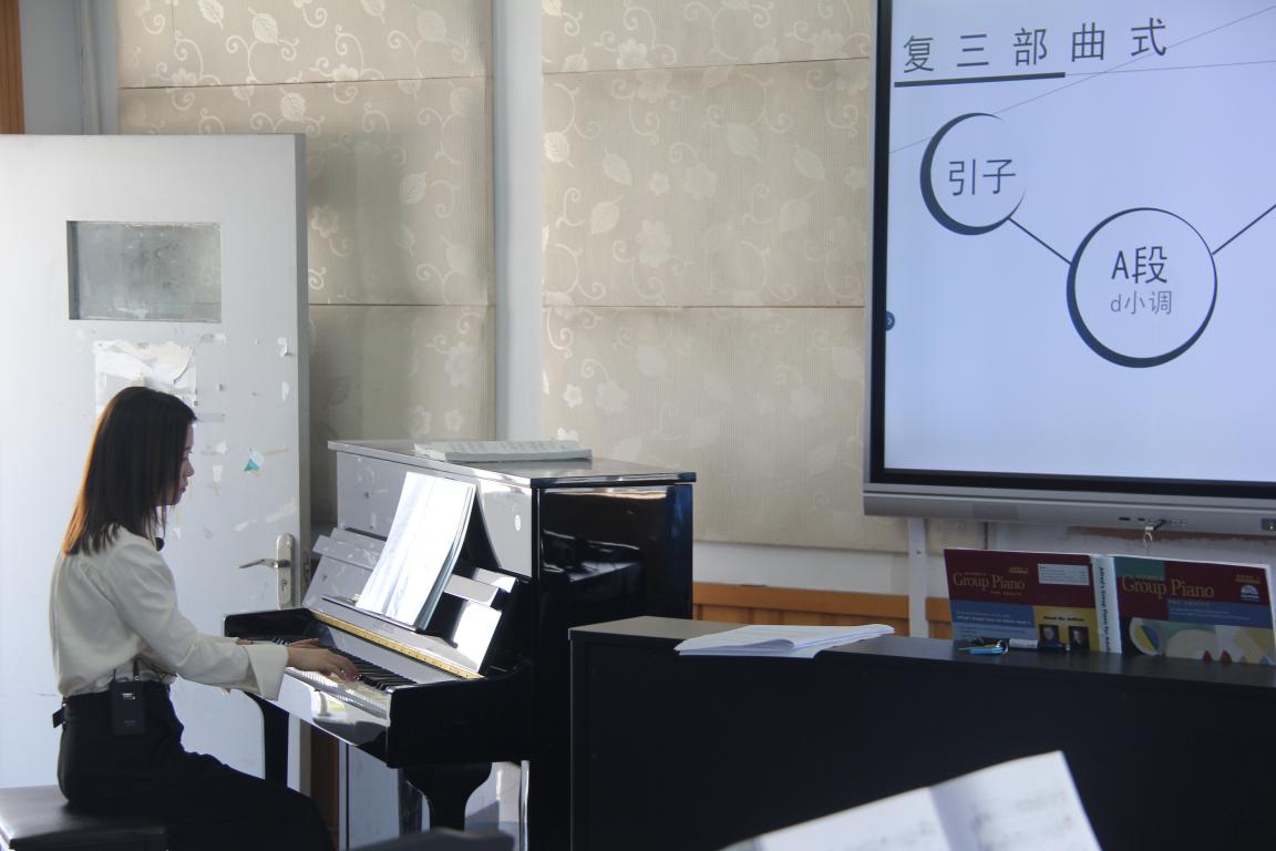 陈露雯老师为大家带来的钢琴课堂的主题是调性听觉的培养与运用。首先陈老师以大小调音阶的对应为切入点,与同学们一起演奏了大调以及与之对应小调的转换,其次由学生进行展示演奏《塔兰泰拉舞曲》,急促、强烈的节奏活跃了现场的氛围,让这个课堂听起来不乏趣味,老师的曲式分析分别为复三部和奏鸣曲的曲式分析,让大家更加清晰的了解到钢琴曲的整体脉络和分段,讲课以师生合奏训练《小调的重奏》为最后一部分,老师循序渐进的合奏给大家带来了听觉上的完美享受。