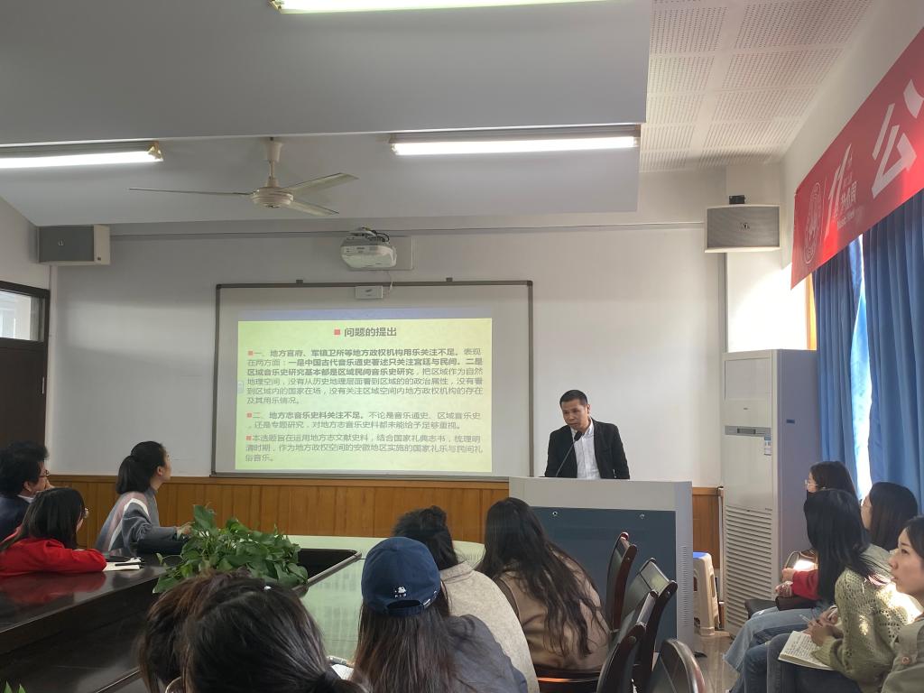 ,主要从事作曲及作曲技术理论课程的教学。此次讲座,他深入剖析了《啊!我的虎子哥》的旋律。这是作曲家金湘创作的歌剧《原野》中的一首咏叹调徐文正老师从细部诸纬度,布局诸纬度和结构逻辑诸纬度对旋律的音程序进,节奏节拍,调式调性等进行细致剖析。接下来是张寅老师的《江南音乐内涵辨析》。张寅老师主持在研国家社科基金艺术学项目1项,是研究生导师。他的此次讲座主要分为四个内容,一,问题的提出。二,何处是江南。三,江南音乐之江南。四,流域视角下之江南音乐。提出对于江南音乐的研究应站在时间和空间两个纬度的动态变化视角,结合流域音乐文化特有的背景,声音,意义予以整体观照。随后,便是钟芳芳老师的关于《中国笙东传朝鲜半岛及其本土化研究》的讲座。钟芳芳老师毕业于韩国学中央研究院文学博士,主要从事中韩音乐文化交流研究。她的此次讲座分为绪论,中国笙东传朝鲜半岛的历史脉络,中国笙在朝鲜半岛的本土化进程和结论。最后,柏互玖老师做了《明清时期安徽地区的国家礼乐和民间礼俗音乐》。柏互玖老师是温州市优秀教师,音乐学博士,老王论坛-玛雅论坛-黑料论坛