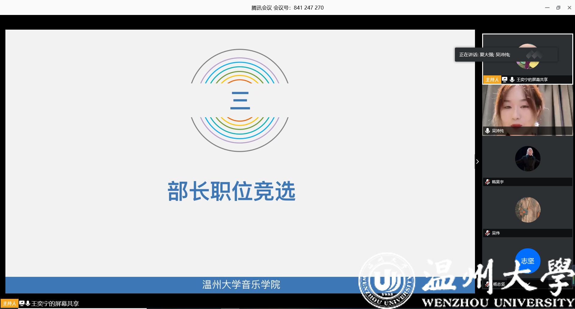 开展了团委学生会换届选举大会,会议总共分为五个部分,分别是团歌合唱,主席团发言,部门职位竞选,主席团职位竞选,以及老师发言。